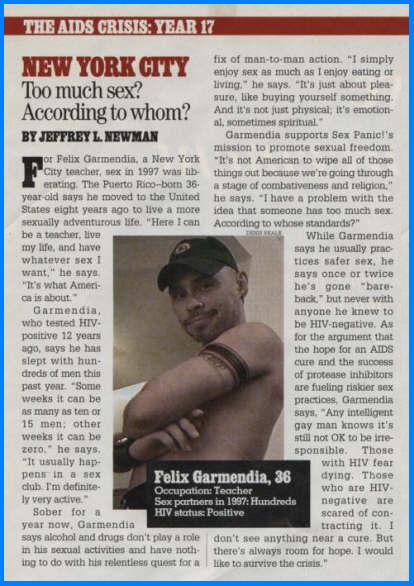 In 1989, I arrived in NYC. Utilized the excuse of enrolling in New York University where I finished a Magna Cum Laude masters degree in art education and art criticism. After finishing my masters, I worked as an elementary school art teacher for fifteen years, In the Bronx and Hispanic Harlem. In 1989, I tested poz for HIV after three years of self imposed celibacy in order to avoid AIDS. It was the dark ages of this crisis. In those days, HIV was a death sentence. I Survived the AZT days as the only option for medication in the eighties. I still remember clearly the 18 pills a day that will make me reenact Linda Blair's famous role in "The Exorcist". I lost most of my friends to AIDS. Those horrible days when everytime the phone rang your heart sank in fear of receiving more bad news. It's going to be 22 years soon after that dreadfull December 19th. Surprisingly so, my HIV is very under control. My T Cells are around 700 and have been undetectable for so many years I can't even remember. It's ironic that instead of HIV being the illness that should have stoped my party days, I just found out that I'm indeed suffering from a very debilitating condition called "Inclusion Body Myositis". This condition is basically a severe muscle inflammation that eventually deteriorates all muscles in your body to the point that they become totally incapable of functioning. It has been seen in people with HIV but most likely ,mine is an auto immune disease. In basic words, my immune system is too strong, you have to laugh! I have been in a relationship with my partner Denis for 11 years. We met in a filthy chat room in AOL. :). He has been poz for 25 years. These days he is my overall care taker, since I have been homebound for three years. I have been a gay activist since the day I came out of the closet. Strong believer in living life out and loud to teach others with examples that gay people are just like everybody else. If we all selfishly hide, I assure you we will never see a cure. Nodoby helps those who are invisible.. I'm a proud Latino, Gay, HIV poz, Atheist and Democrat. Had a very intense life and have no regrets whatsoever. Did it all at least once and those things that I liked, more than once. Have a wonderful family that supports me unconditionally since I'm not the only member of the family with HIV. One of my brothers is carrying the virus as well due to his severe heroin addiction of 35 years.